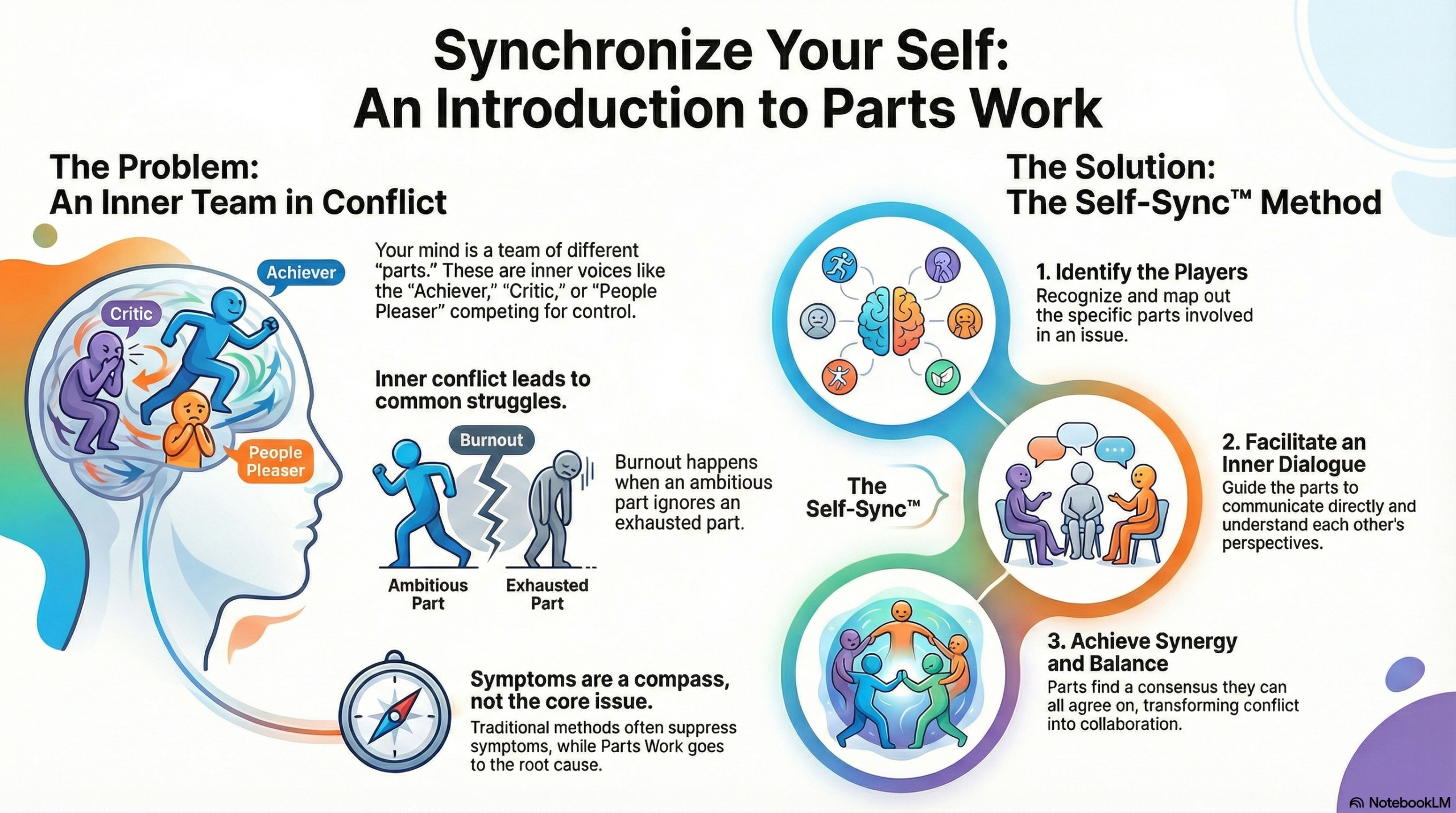 A visual guide to understanding your internal system. Learn the core concepts of Parts Work at a glance: